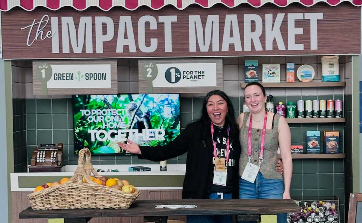 Green Spoon Sales partnered directly with 1% for the Planet on its activation at Natural Products Expo West 2026. Dubbed the Impact Market, this creative stand showcased Green Spoon’s bold commitment as a 1% for the Planet member, provided a fun opportunity for attendees to learn more about 1% for the Planet, and highlighted various brands that are both 1% for the Planet certified and represented by Green Spoon.
